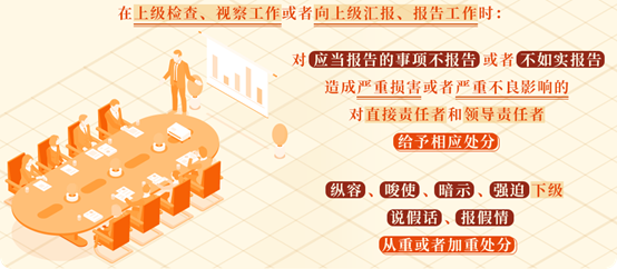 《中国共产党纪律处分条例》第一百四十条规定,在上级检查、视察工作或者向上级汇报、报告工作时,对应当报告的事项不报告或者不如实报告,造成严重损害或者严重不良影响的,对直接责任者和领导责任者,给予警告或者严重警告处分;情节严重的,给予撤销党内职务或者留党察看处分。在上级检查、视察工作或者向上级汇报、报告工作时纵容、唆使、暗示、强迫下级说假话、报假情的,从重或者加重处分。