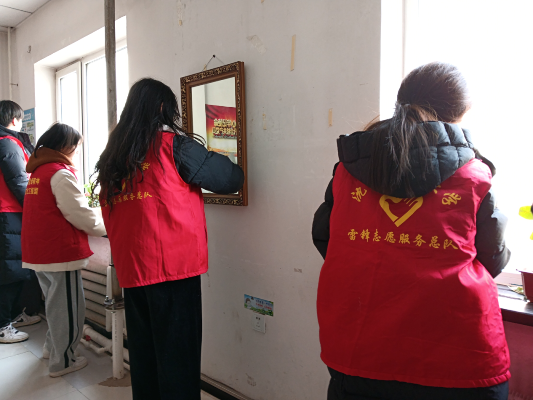 志愿者们负责社区公共区域的玻璃清洁,他们用抹布和小刀仔细清理每一扇窗户,让玻璃恢复了原有的透明度。