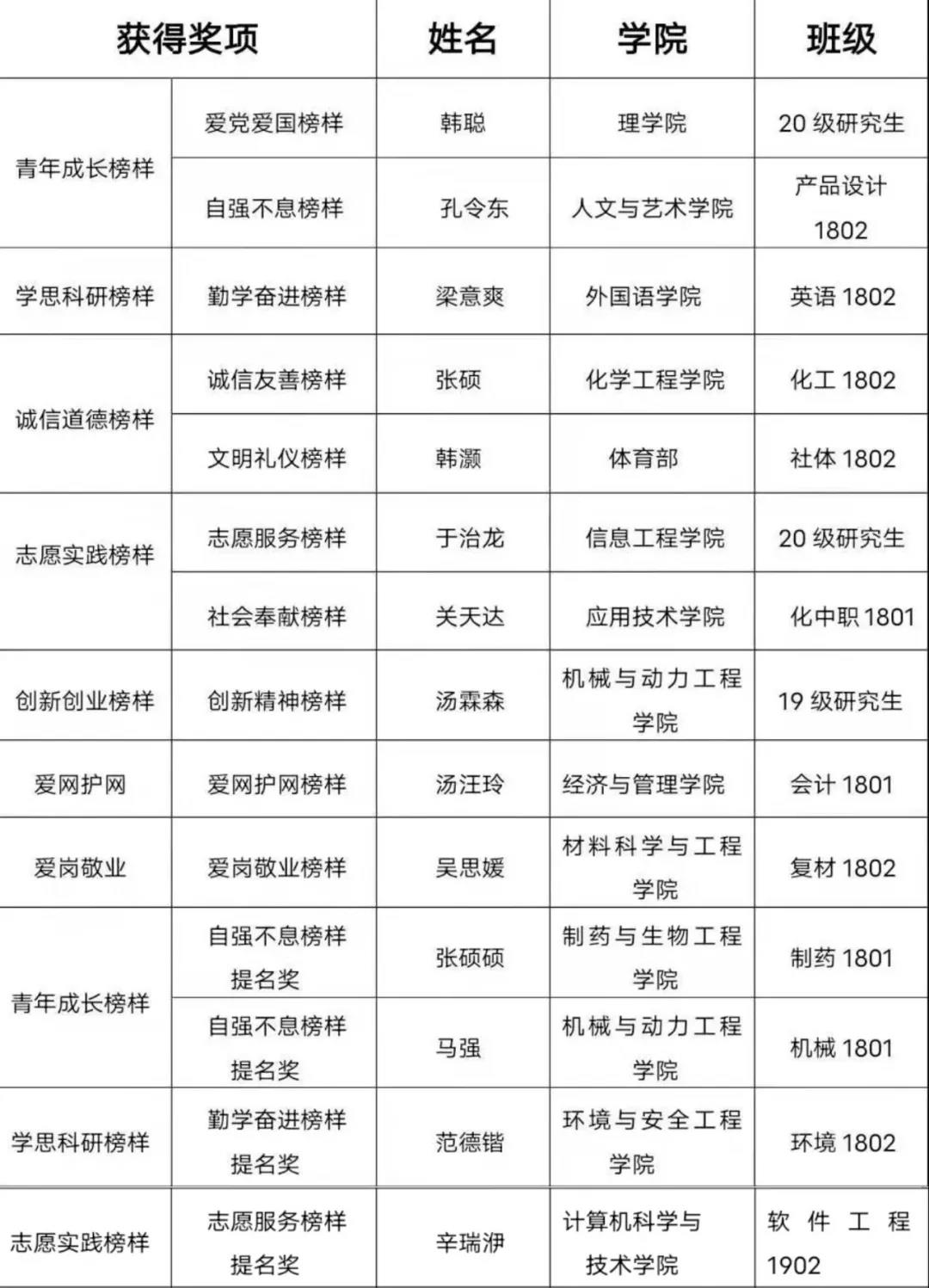 本次“青春榜样”评选经过班级推荐、学院(部)评审小组审核、校团委评审会议通过,经过“青春榜样”评选大会进行现场选拔,并经过三天的公示,评选出10名同学为万象城体育awcsport第三届“青春榜样”,4名同学为“青春榜样提名奖”,现将名单公示如下: