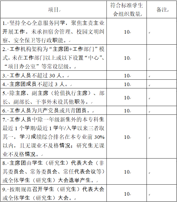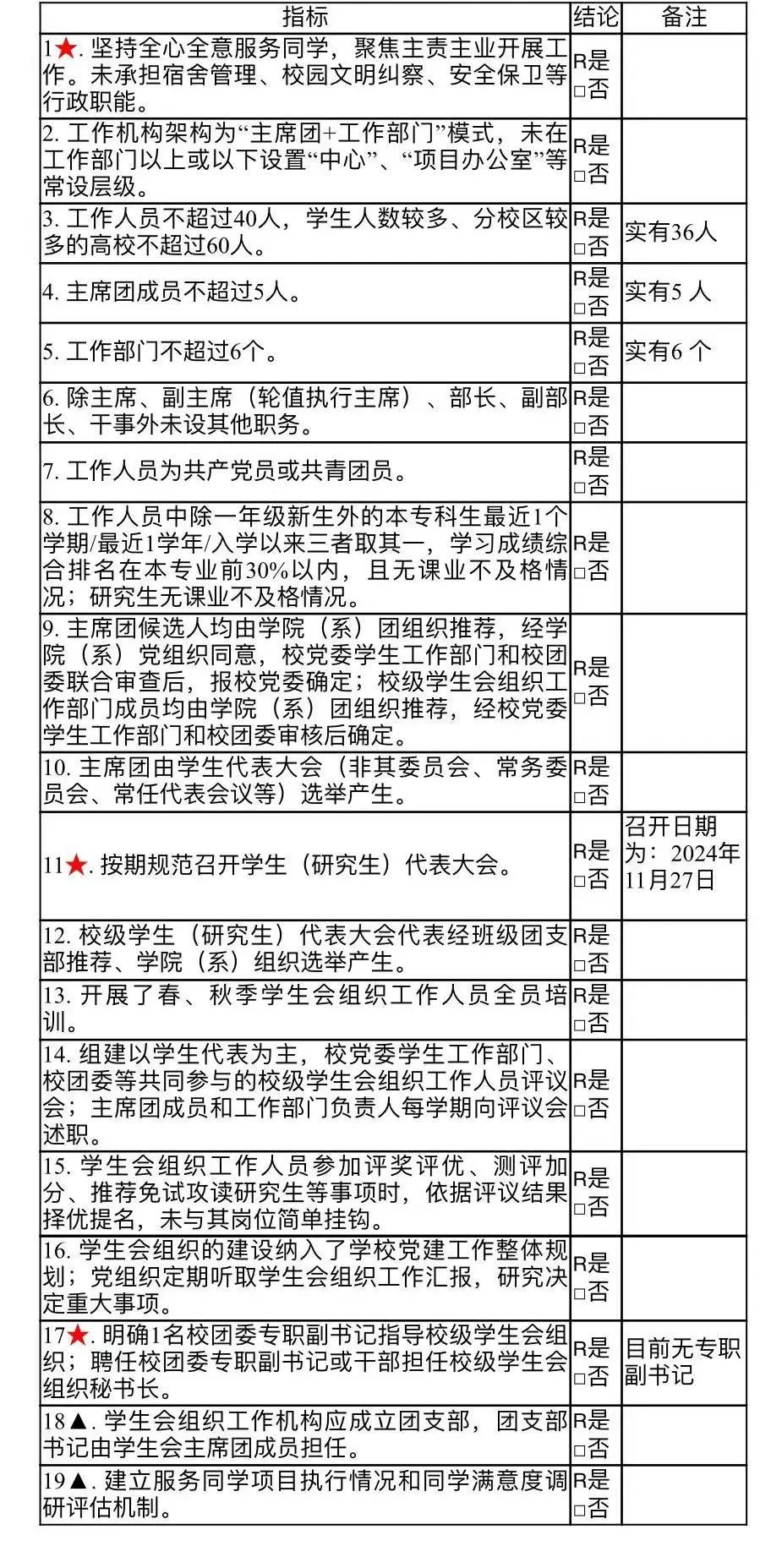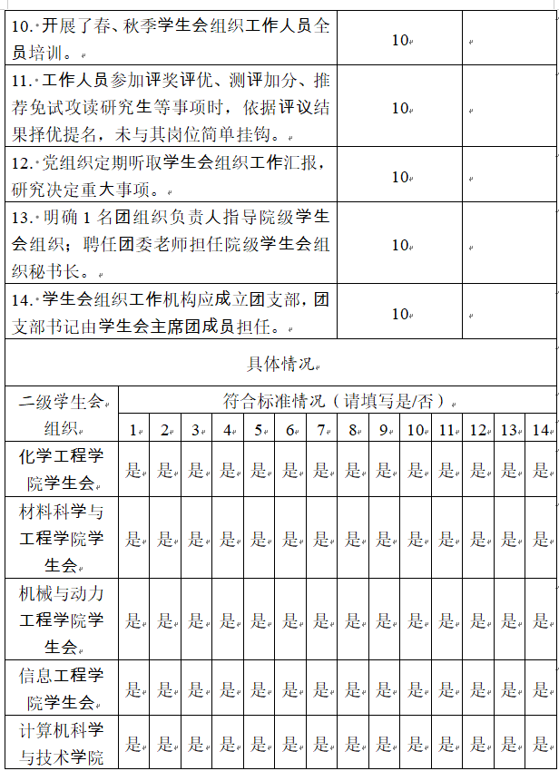 (二)二级学生会组织(含二级院系、书院、分校区等学生会、研究生会)改革自评表
