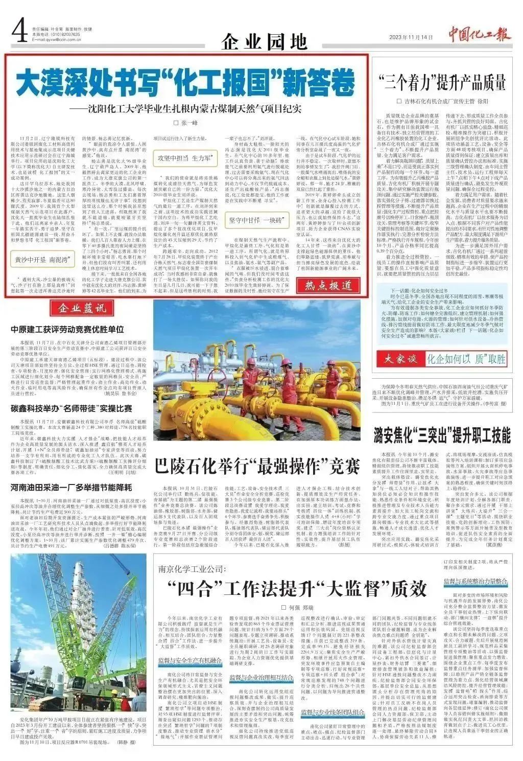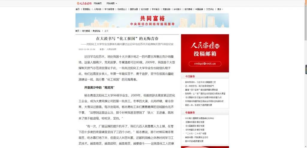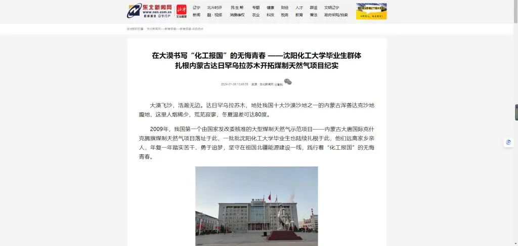 万象城始终坚守“化工报国”初心,把立德树人作为根本任务,把服务社会作为根本使命。七秩春秋,育10万栋梁。科技精英、企业领军、政府骨干、创业先锋,数代化大学子传承红色基因,担负化工行业发展重任,矢志化工报国。今年,学校党委进一步凝炼“化工报国”的精神内涵,策划采访各行各业的化大毕业生,充分展现“化大人”用奋斗坚守、勤劳智慧,砥砺化工强国之志,实践化工报国之行。9月下旬,学校组织采访组深入内蒙古达日罕乌拉苏木实地走访,对扎根于内蒙古大唐国际克什克腾旗煤制天然气项目的42名毕业生进行专题交流访谈,整理形成纪实报道。近日,《中国教育报》、人民论坛网、中国新闻网、《中国化工报》、东北新闻网、辽宁省教育厅官网、辽宁高校思政网官微等十几家主流媒体相继报道万象城毕业生在大漠书写“化工报国”的无悔青春。