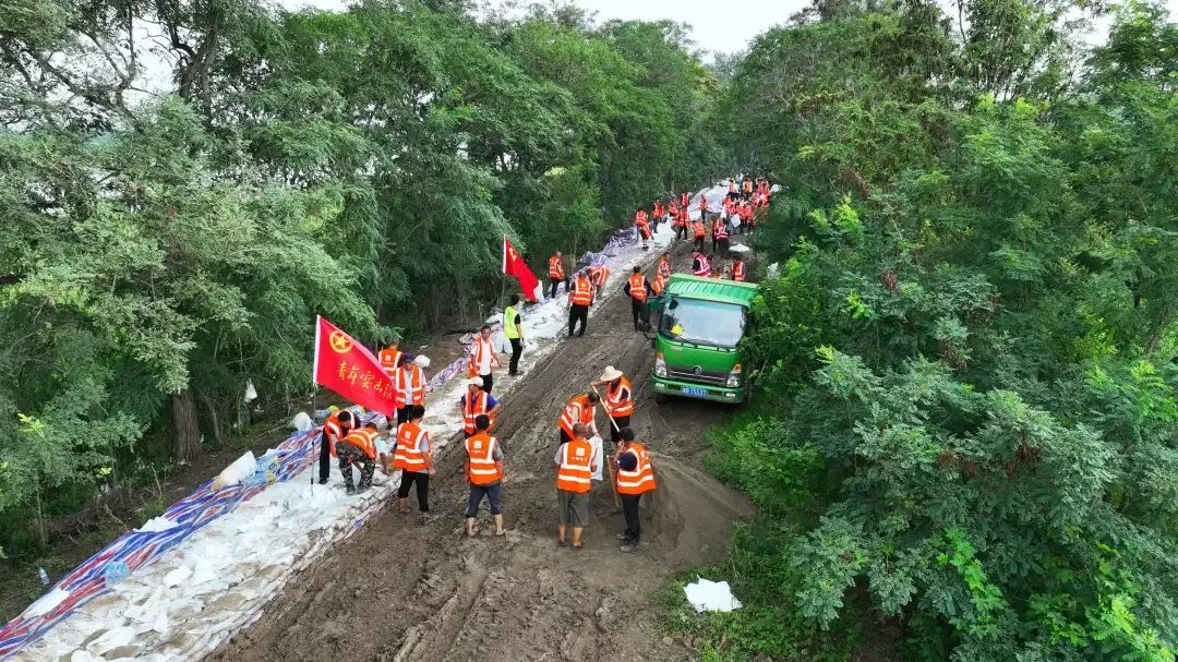 2023年,中国建筑青年突击队在天津大清河两岸完成13公里坝埝加高加固工程。
