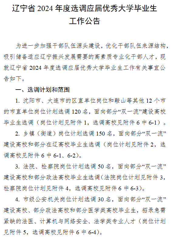 辽宁省2024年度选调应届优秀大学毕业生工作公告(共招350人)