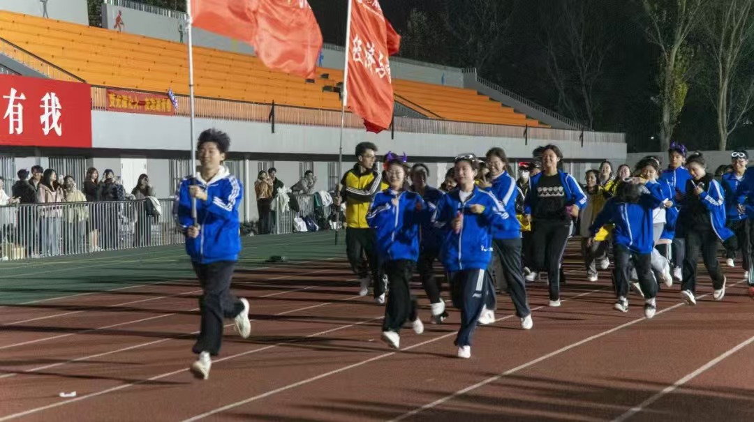 2024年11月8日晚百余名化大学子集聚在体育场,共同参加了“荧’接青春,逐光奔跑”主题荧光夜跑活动。此次活动由校团委主办,校学生会文体部承办,旨在让同学们在奔跑中释放青春活力,展现当代化大学子的青春风采。出席活动的有校团委战申书记、2023届校友沈阳工业大学教师蔡泽旭、各学院分团委书记和团委老师及来自11个学院的6支代表方队。随着校团委战申书记的一声“出发”,蓄势待发的六个方队气势奔腾的出发了。他们在黑暗中疾驰,身姿矫健而灵动,每一个脚步都似踏在青春的鼓点上,充满了无尽的力量与热情。同学们迈着坚定的步伐,朝着目标前进。方队成员们保持着整齐的队列、挥动着旗帜,展现出高度的纪律性和团队精神,让我们一起来回顾一下精彩的瞬间。