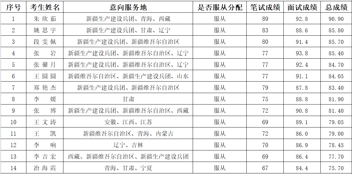 根据上级要求,本次考试总成绩=笔试成绩50%+面试成绩50%。现将笔试、面试评分结果予以公示。
