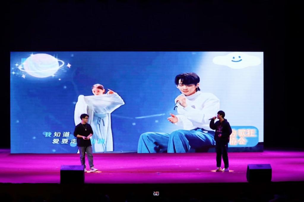 在聚光灯的拥抱下,歌声悠悠响起,由大学生艺术团的同学们带来的《刻在我心底的秘密》和《我的秘密》如同一封缓缓展开的情书,带着无尽的温柔与惆怅萦绕心间。