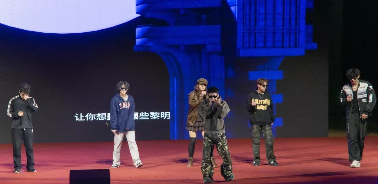 舞台仿若被热血点燃,说唱表演《少数派行动》震撼开场,大学生艺术团的同学们给我们带来的节奏如汹涌的脉搏,强烈跳动,敲打着每一位听众的心弦。