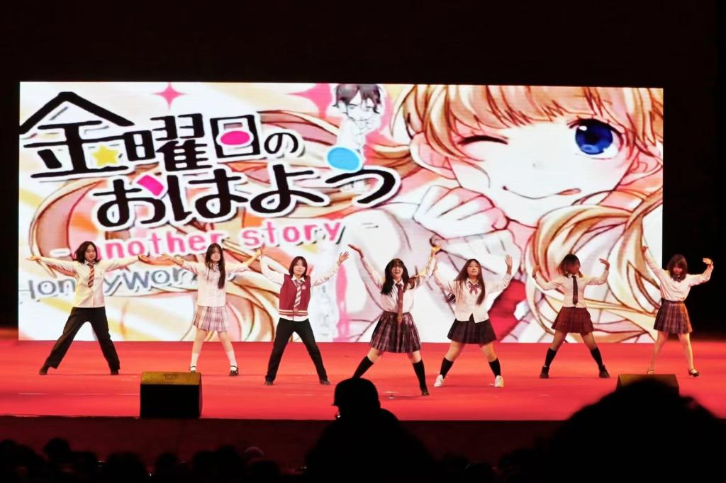 漫节奏动漫协会的同学们打破次元壁,引领我们步入奇幻世界。每一个舞步皆踩在幻想与现实的交界。它是小众热爱的盛大狂欢,在聚光灯下,舞者们以热情为笔,以舞台为卷绘出一幅绚丽的画卷。