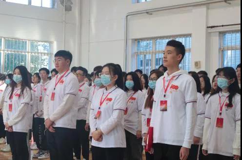 典礼仪式开始,与会师生庄严肃立,面向团旗,齐声高唱中国共产主义青年团团歌。
